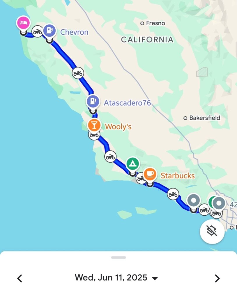 From the famous Santa Monica Pier, Day 13 was a stunning ride up the beautiful California coast. We experienced the scenic beauty of El Matador State Beach, enjoyed refreshing breaks at places like Starbucks, and passed by the picturesque Cachuma Lake Recreation Area. The coastal road offered breathtaking views before we arrived at our lodging, the Monterey Hostel, after a journey of approximately 530 kilometers (329 miles).