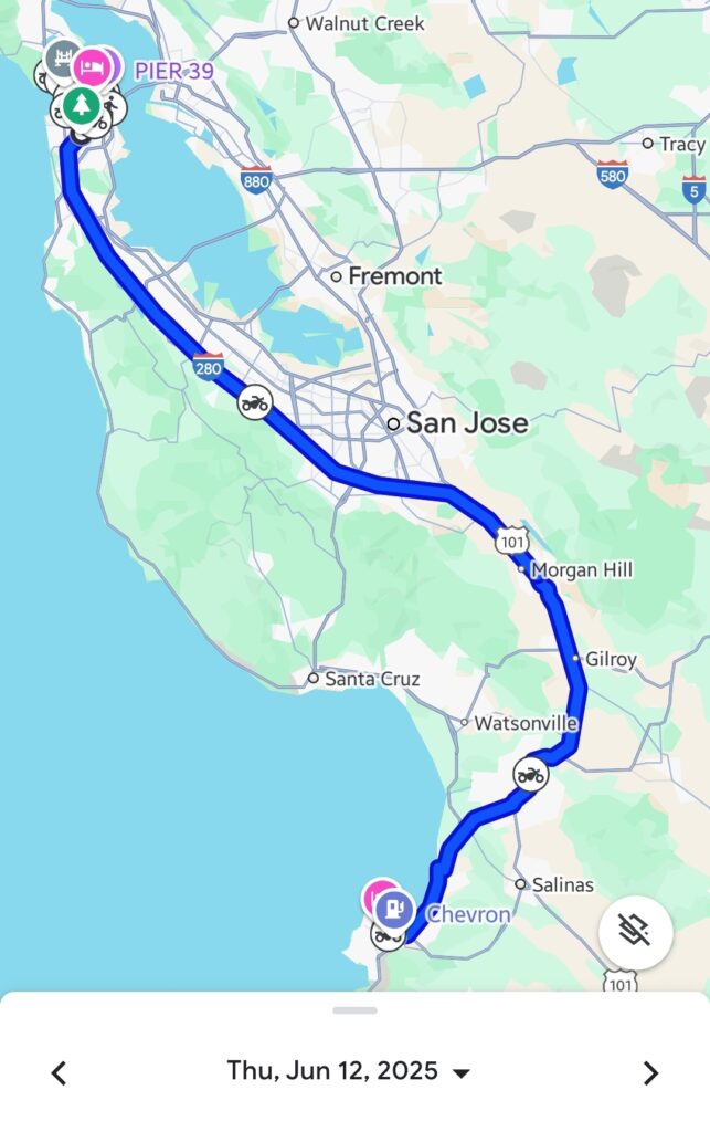 Day 14 brought us into the iconic hills of San Francisco! Leaving Monterey, we immersed ourselves in the city’s unique charm. We enjoyed panoramic views from Twin Peaks, explored the bustling Fisherman’s Wharf, visited the famous Pier 39 and Ripley’s Believe It or Not!, and savored a meal at The Marine Seafood Restaurant. The day ended with us settling into the San Francisco Fishermen’s Wharf Hotel, having ridden around 179 kilometers (111 miles) around the city.