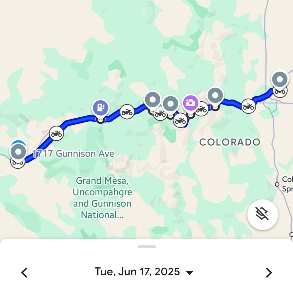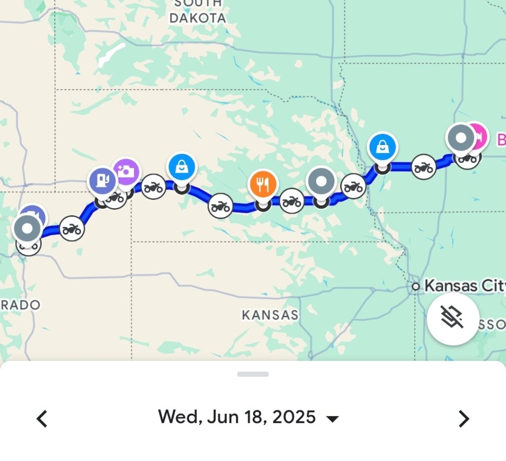 Leaving Grand Junction, Colorado, Day 19 was a high-altitude adventure through the heart of the Rocky Mountains. We passed by Teddy Morse’s Grand Junction Harley-Davidson and enjoyed breathtaking views from iconic locations like Vail Ski Resort, Dillon Dam Overlook, and Georgetown Overlook Pull-Out. Our ride, roughly 460 kilometers (286 miles), brought us to Commerce City, Colorado.